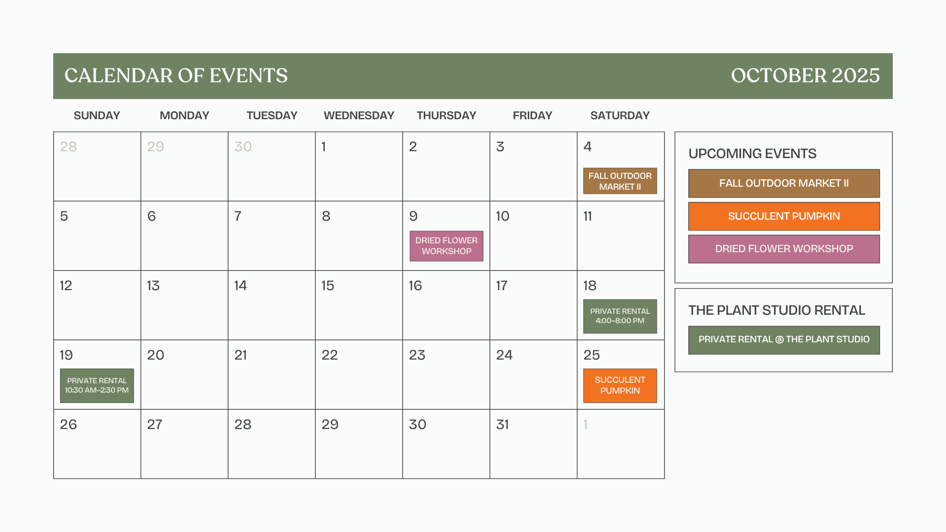 Shop PlantsWe love plants! We have a wide variety of house plants available in store. We also offer custom plantings for various events.